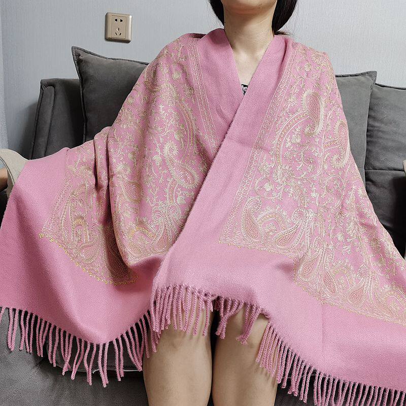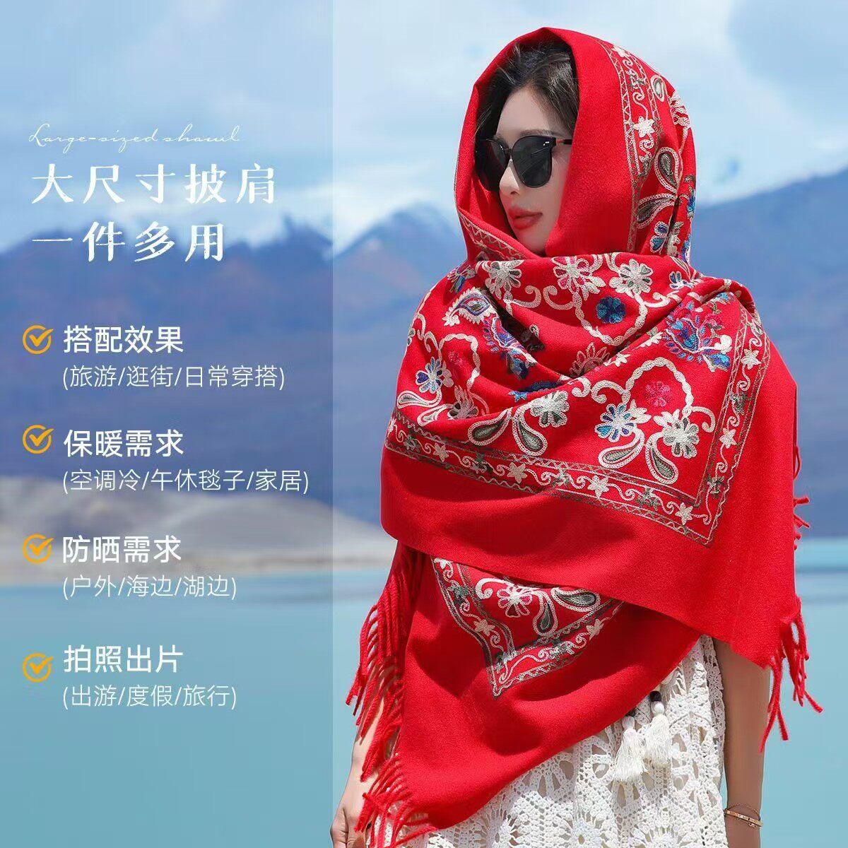 秋冬保暖加厚围巾民族风披肩超大高档刺绣仿羊绒百搭围脖斗篷披风