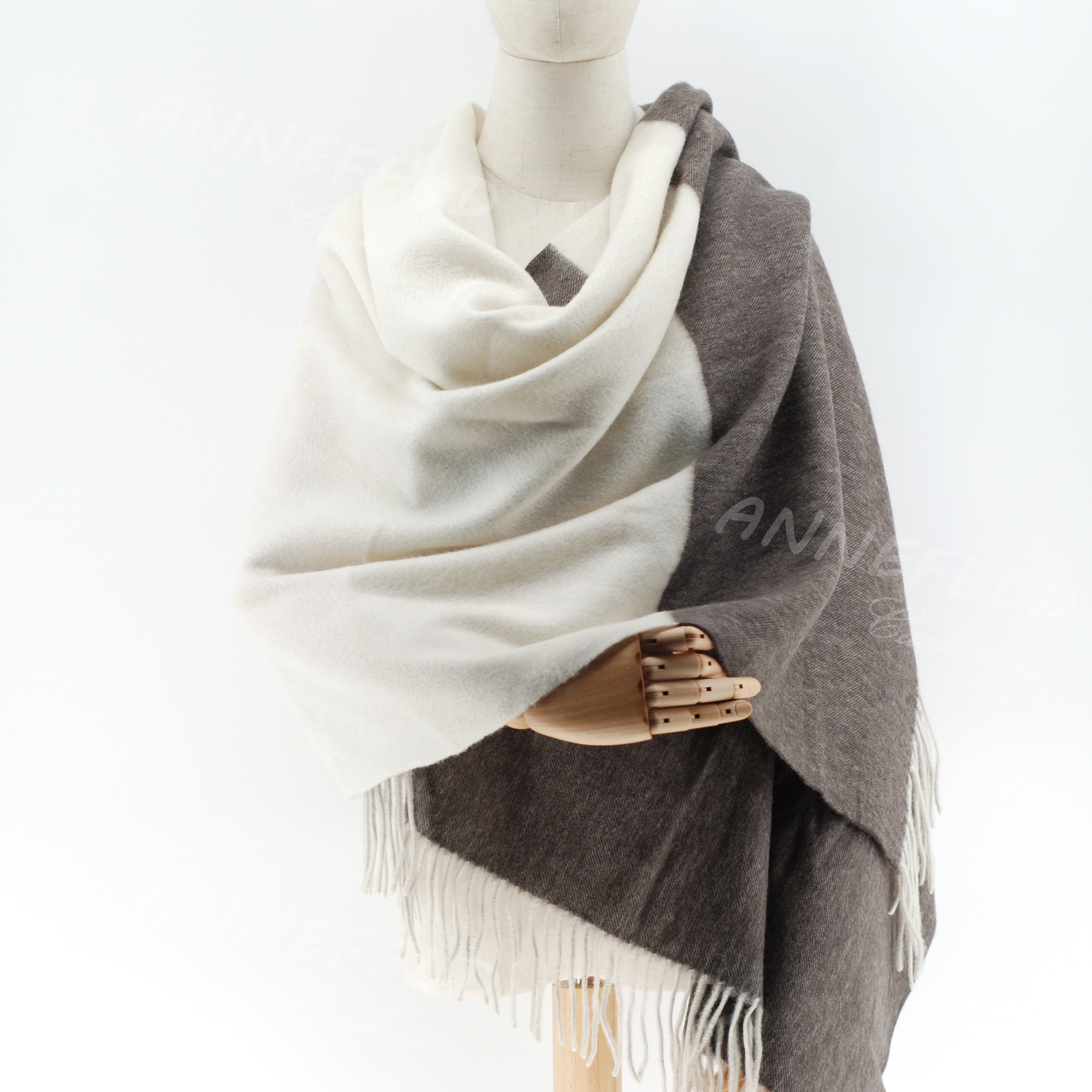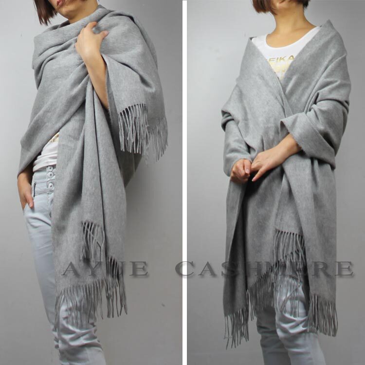 220 72超大重磅羔羊绒披肩 围巾 水波纹/秋冬加厚 流苏女灰