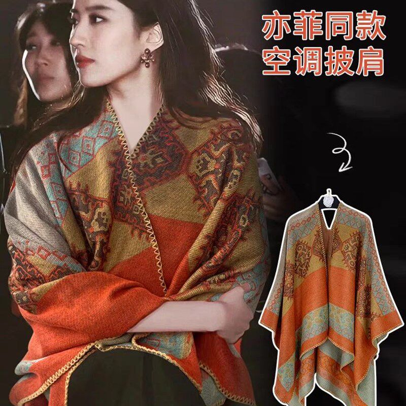 法国小众民族风披肩秋冬旅游保暖西藏云南羊绒披风超大斗篷围巾女