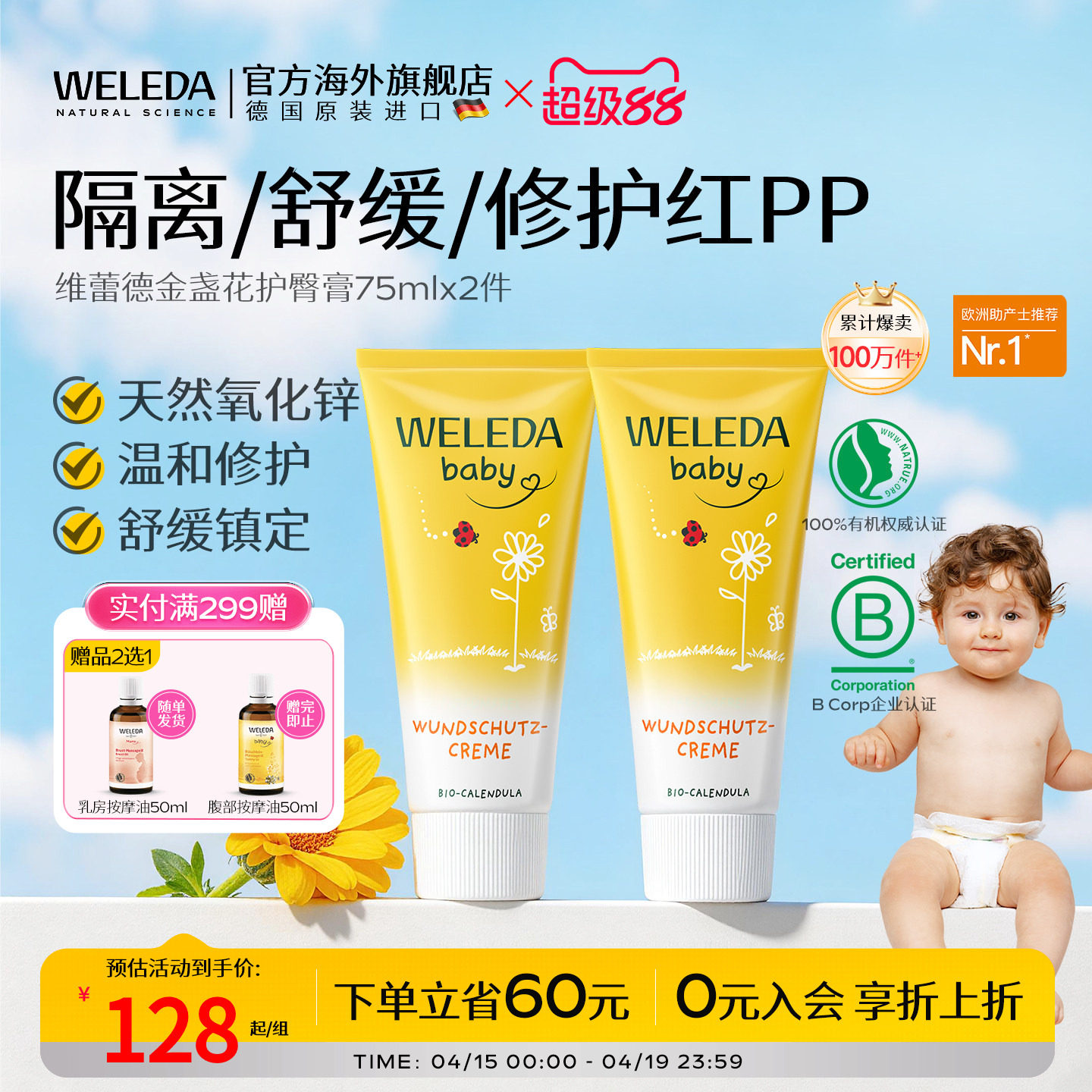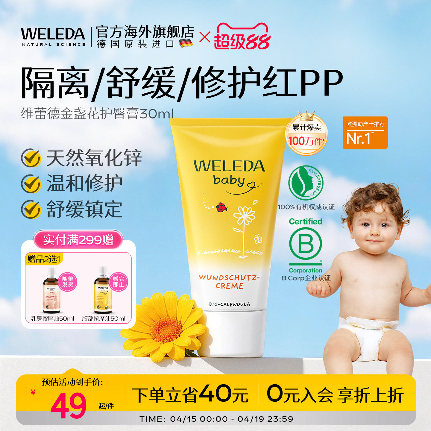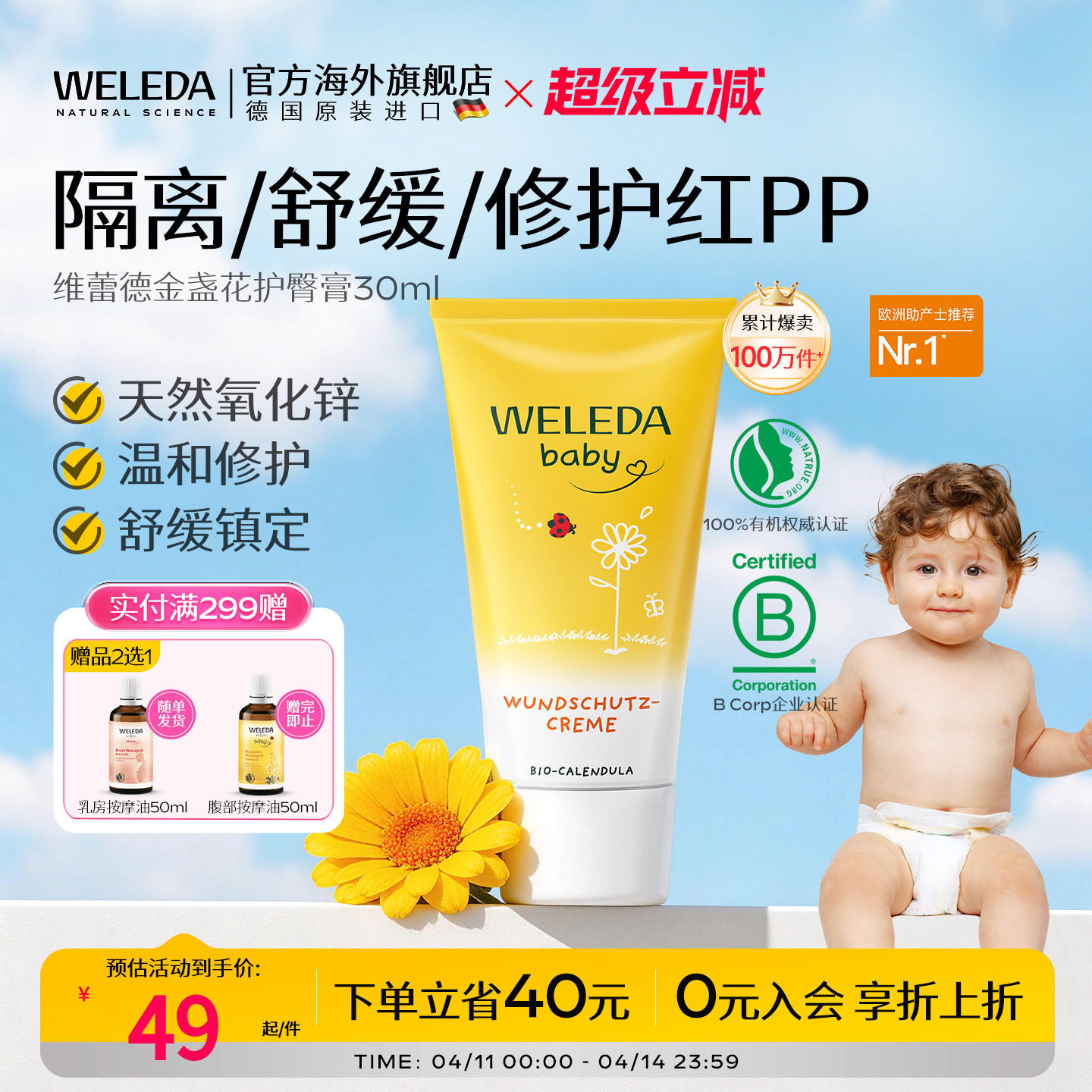 weleda维蕾德护臀膏新生婴儿防红屁股护臀霜金盏花效期至27年4月
