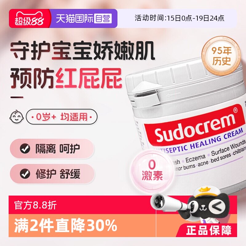 Sudocrem护臀膏新生婴幼儿屁屁膏英国红屁屁专用屁屁乐宝宝护臂霜