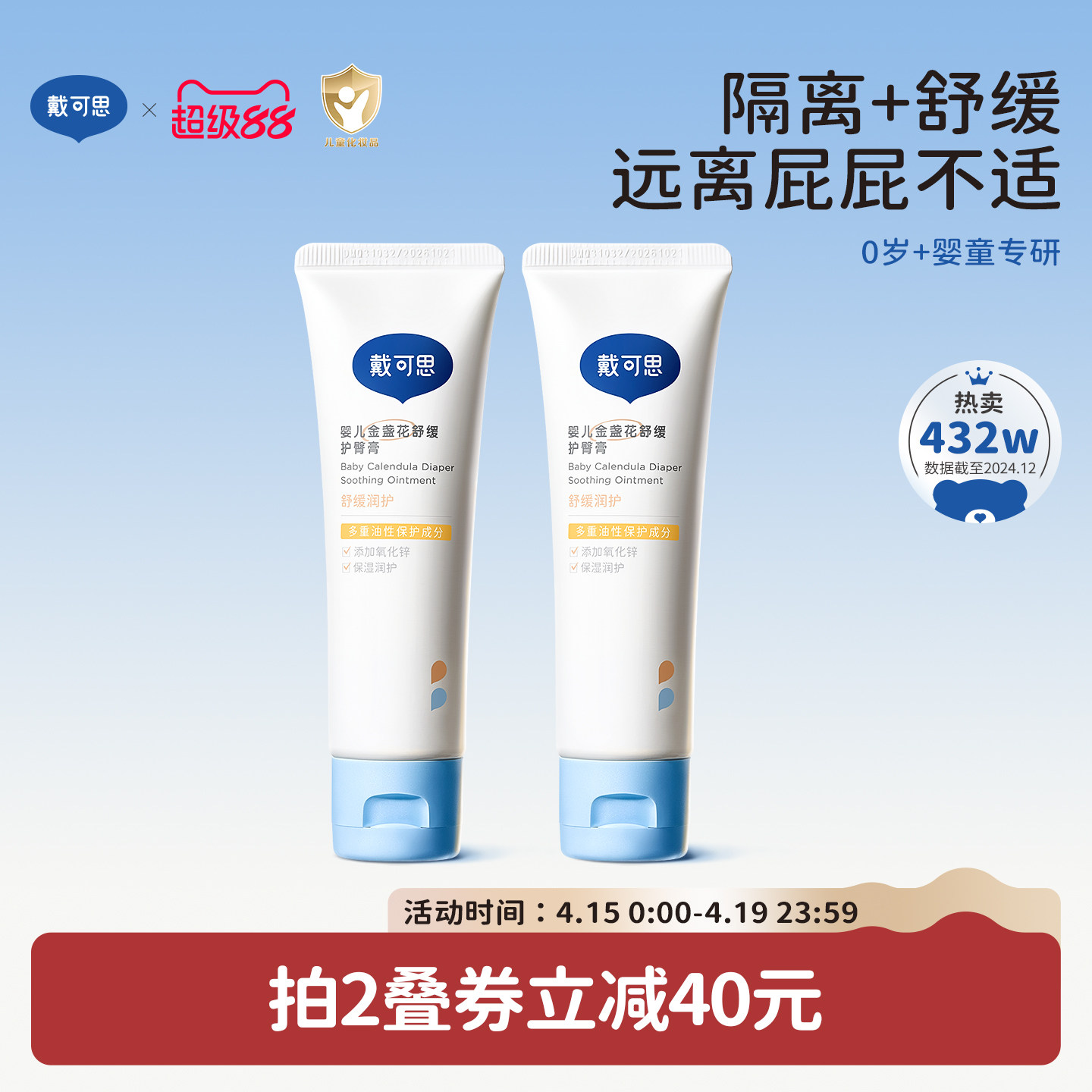 戴可思护臀膏新生婴儿专用氧化锌舒缓秋红金盏花宝宝屁屁膏护臀霜