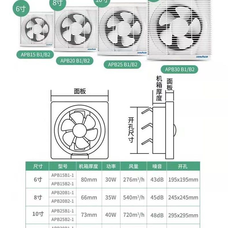金羚排气扇卫生间换气扇排风扇墙壁式10寸厨房厕所家用30x30方形