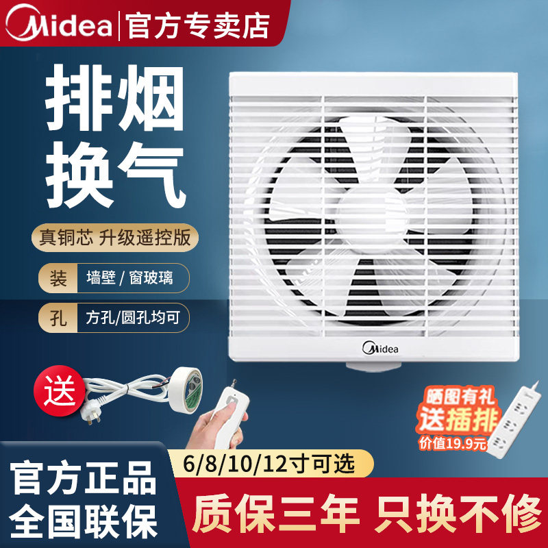美的排气扇厨房油烟抽风机卫生间排风扇墙壁窗家用强力抽气换气扇