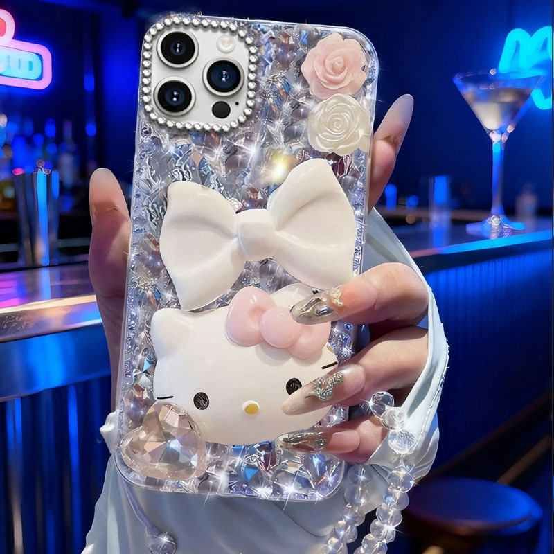 水钻kt猫适用苹果16手机壳iphone15promax滴胶14plus高级感13立体12小众11por闪粉8xr/7xsmax6s硅胶se2/3卡通