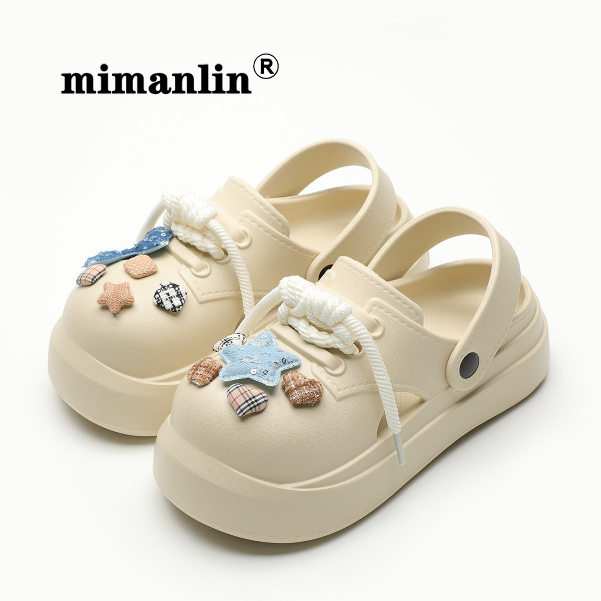 五角星厚底绑带小众包头洞洞鞋女夏2024新款防滑EVA软底大码凉鞋