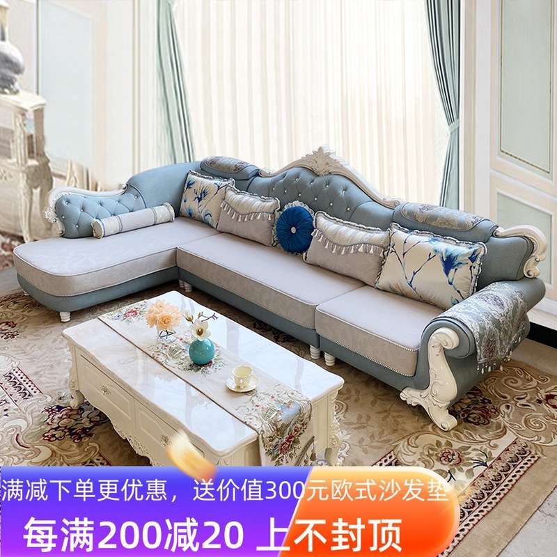 欧式布艺沙发组合客厅简约转角L贵妃实木大小户型奢华沙发可拆洗