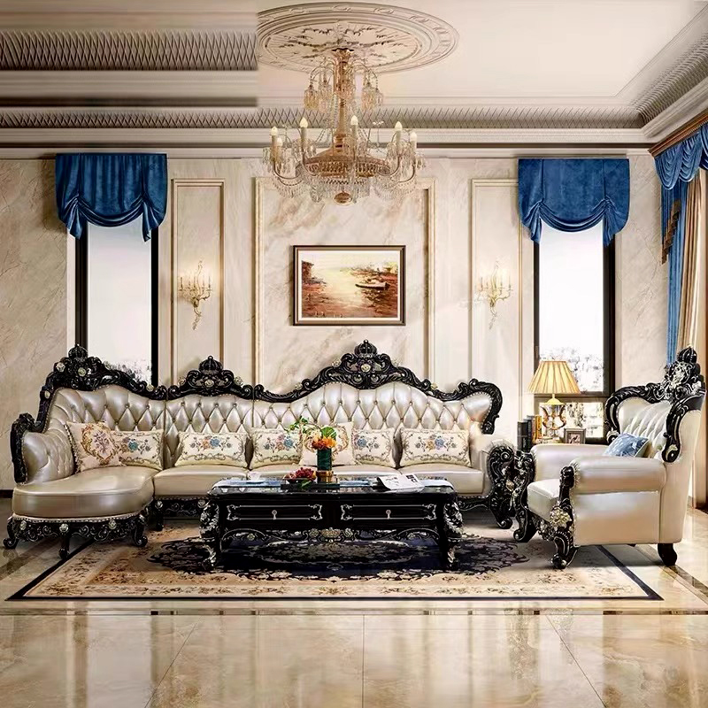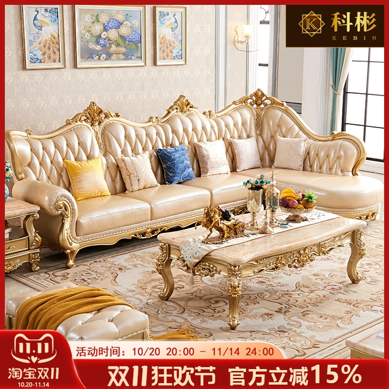 美式轻奢欧式沙发真皮奢华客厅实木雕花贵妃简欧高档家具转角组合