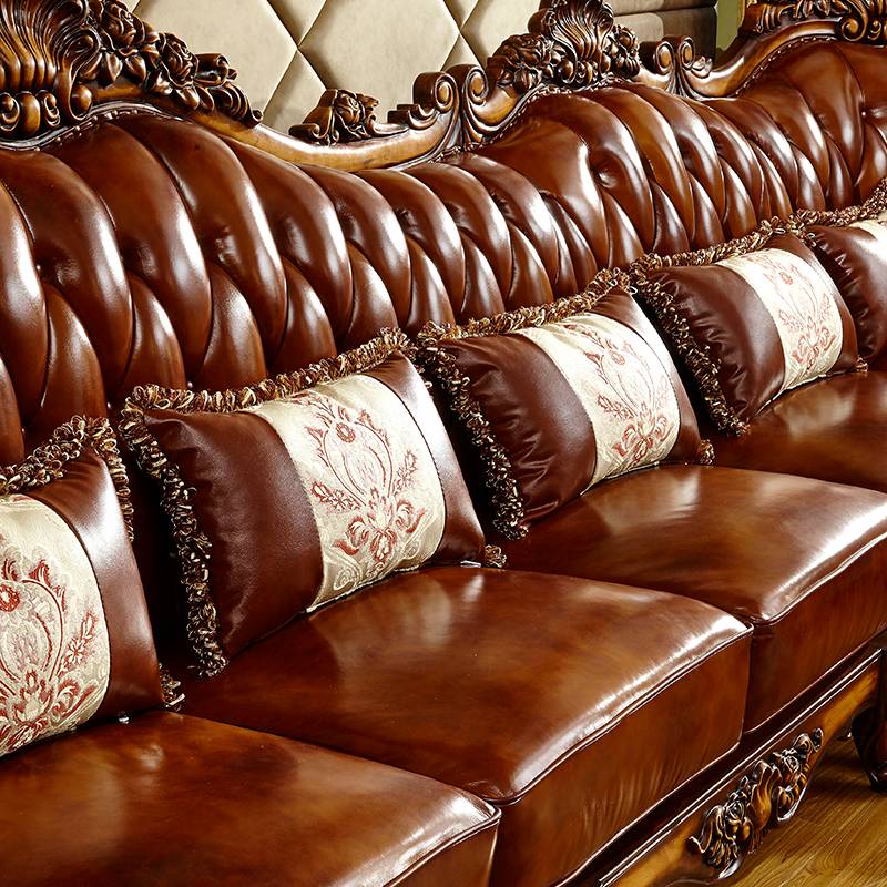 欧式真皮沙发客厅转角组合实木雕花美式123头层牛皮大小户型家具