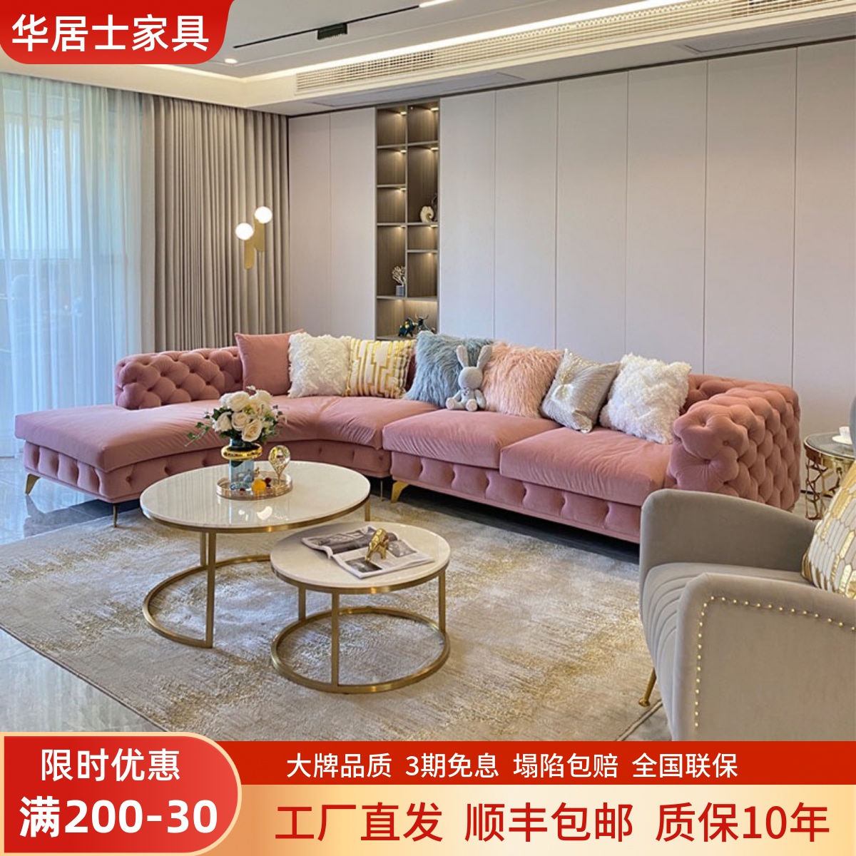 美式轻奢客厅沙发弧形拉扣贵妃转角布艺法式欧式粉色网红2025新款