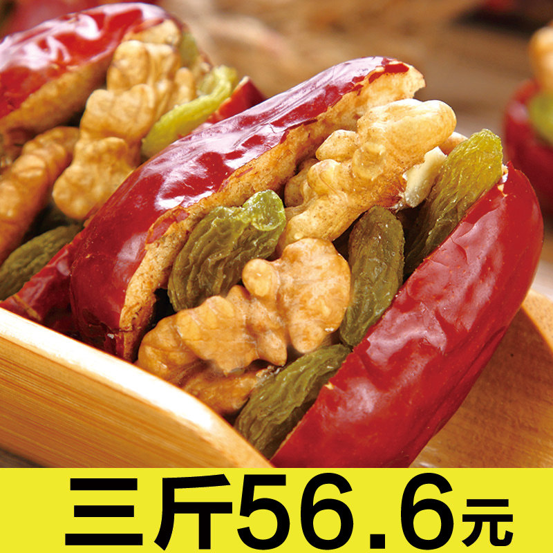 买1送1新疆和田红枣夹核桃仁葡萄干大枣子干果什锦夹心抱抱零食