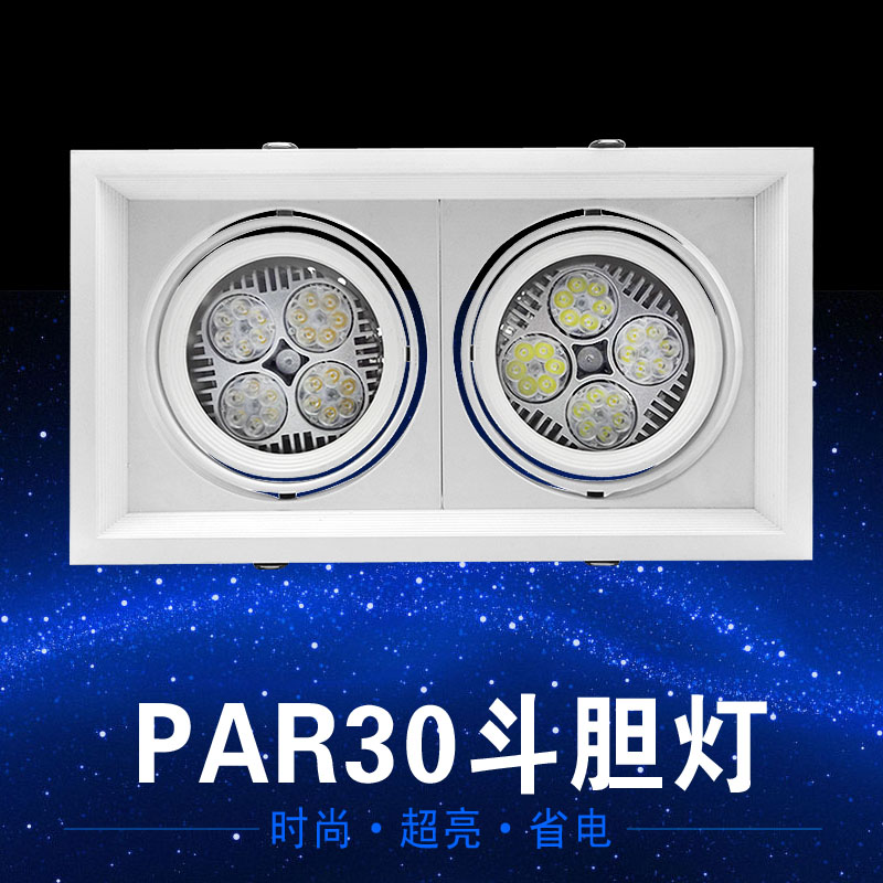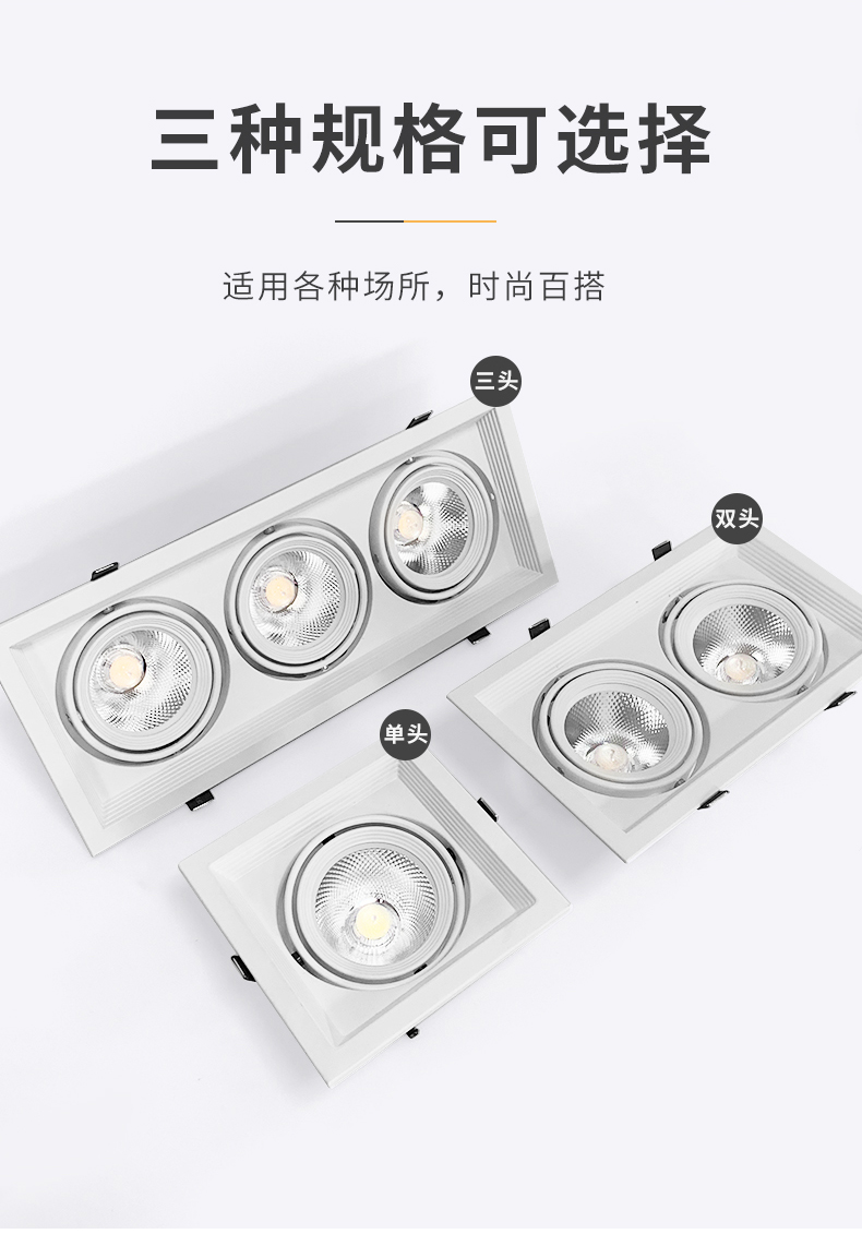 led斗胆灯双头射灯家用商场天花灯三头格栅灯单头方形筒灯嵌入式