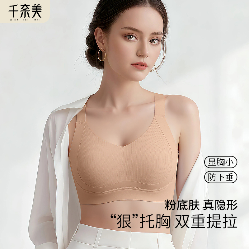 千奈美无痕内衣女薄款粉底液隐形大胸显小防下垂收副乳大码文胸罩