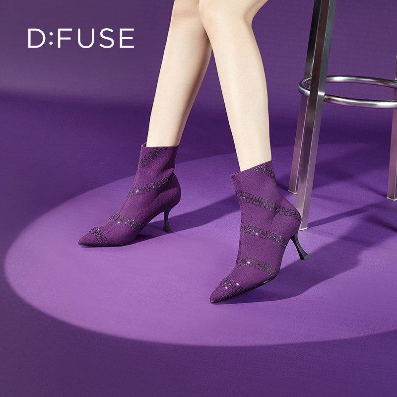 fed气质高跟靴冬季新款女靴绒面时装靴黑色细跟短靴女S0911-YA091