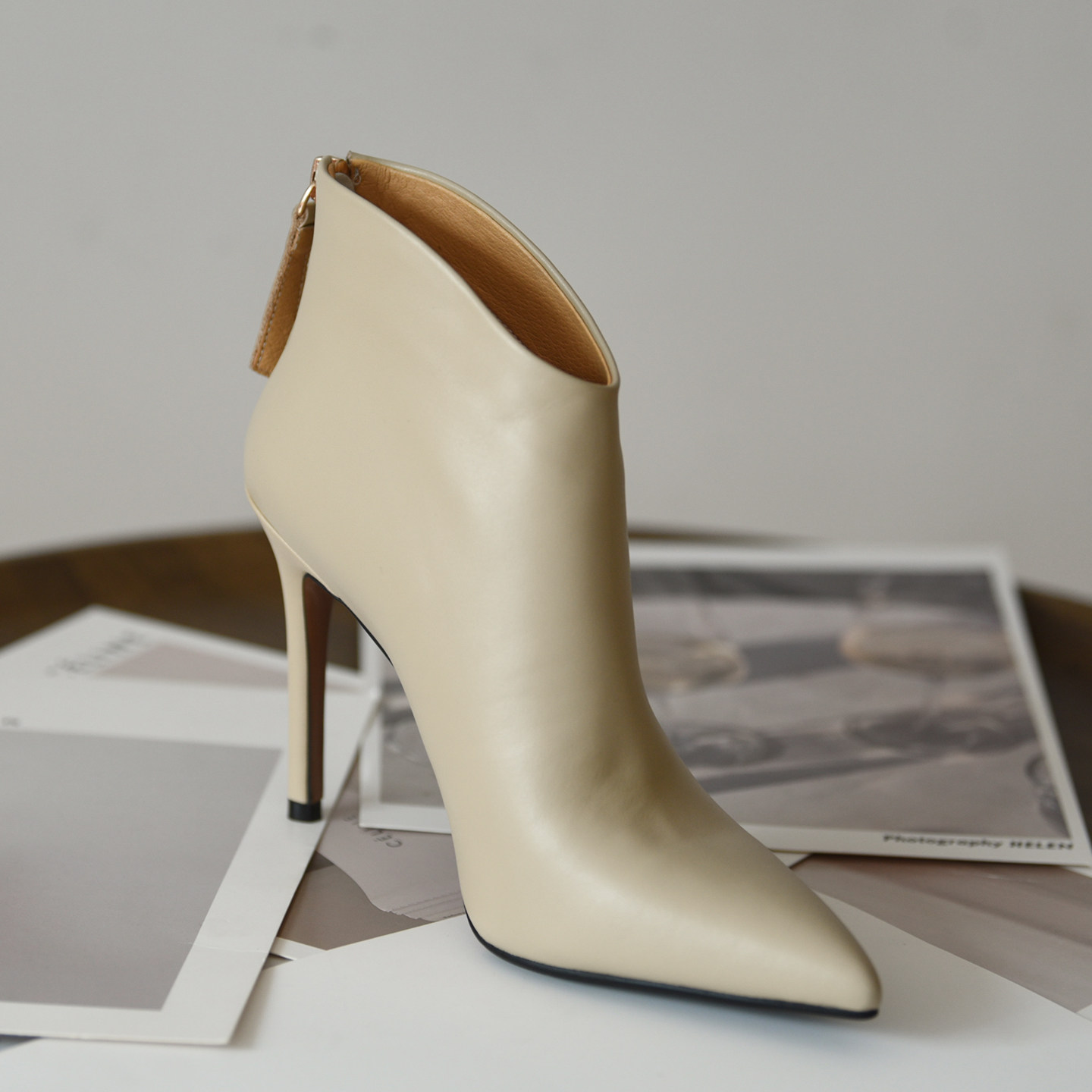 - 尖头高跟短靴女