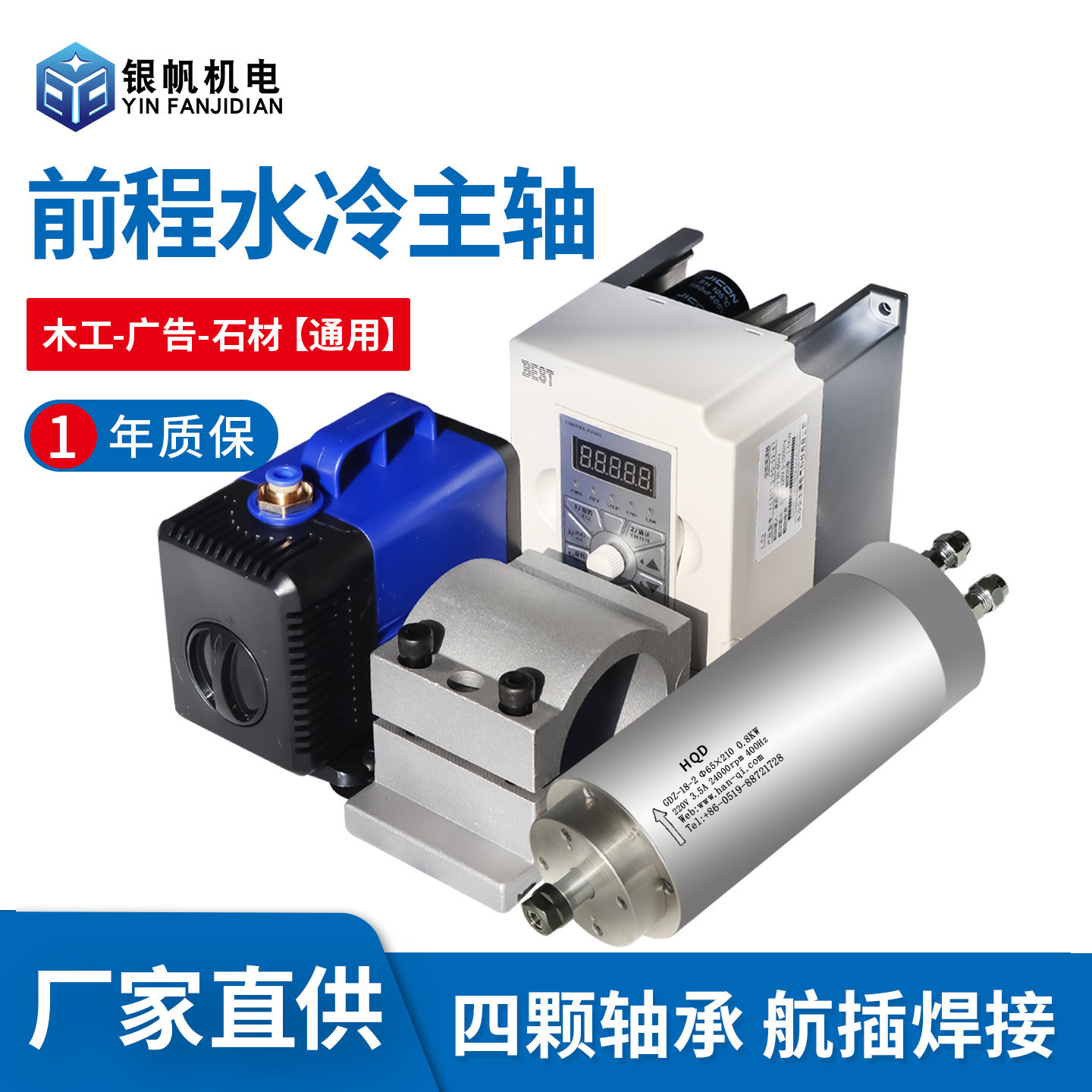 雕刻机前程HQD水冷主轴配件1.5/2.2/800木工广告石材通用厂家直供