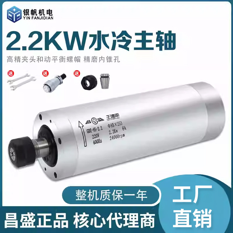 2.2KW昌盛主轴电机广告木工雕刻机水冷高速电主轴4轴承GDZ80-2.2B