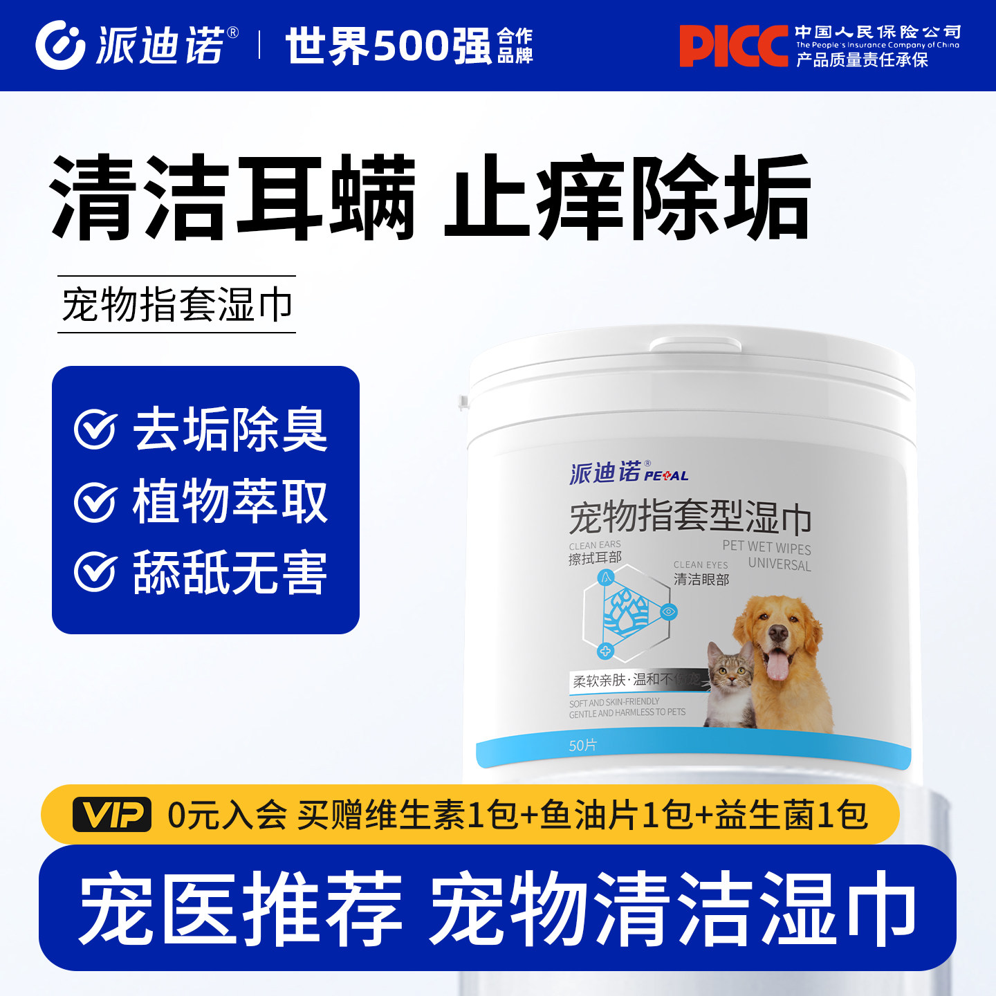 派迪诺宠物清洁指套猫咪狗狗洁牙去牙结石清洁口腔去泪痕耳垢湿巾