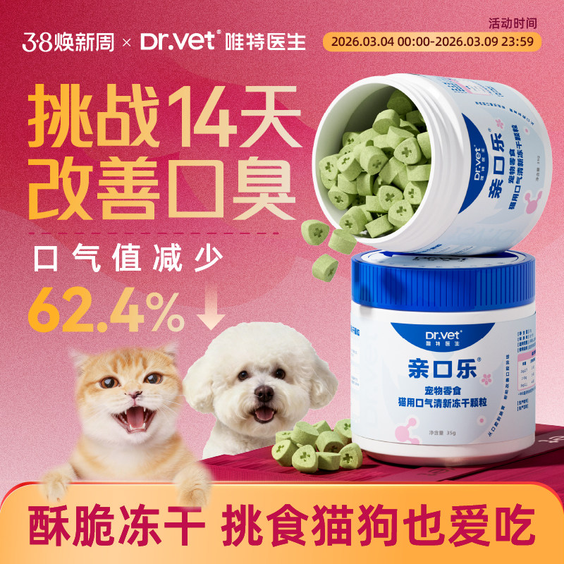 唯特医生猫零食除口臭溶菌酶狗洁牙成幼犬猫磨牙洁齿宠物鸡肉冻干