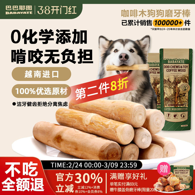 咖啡木磨牙棒狗狗洁牙玩具解闷防拆家零食金毛边牧柯基小中大型犬