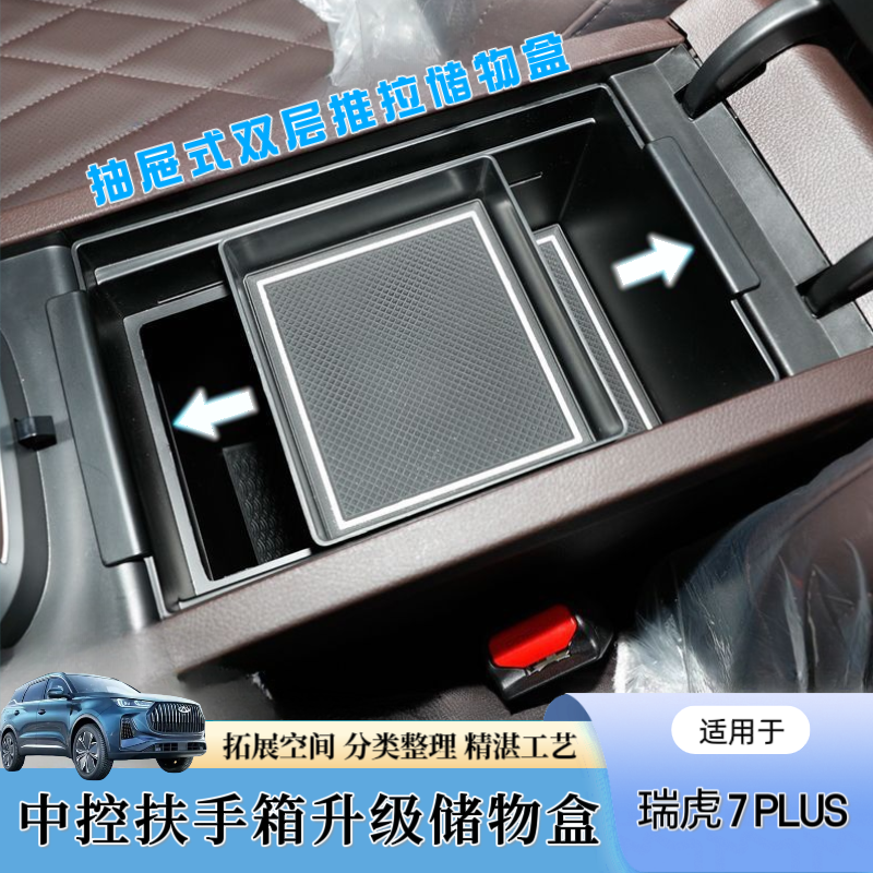 奇瑞瑞虎7PLUS中控扶手箱内储物盒收纳箱改装件汽车用品装饰配件