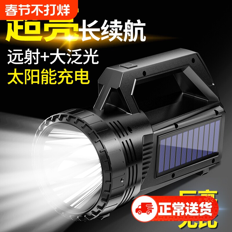 强光手电筒太阳能探照灯户外超亮充电式远射手提灯大容量超长续航
