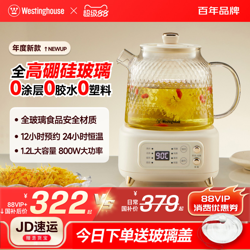 西屋全玻璃养生壶纯玻璃家用多功能炖煮一体2026新款恒温烧水壶