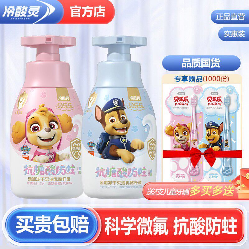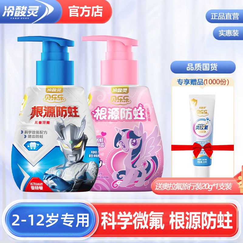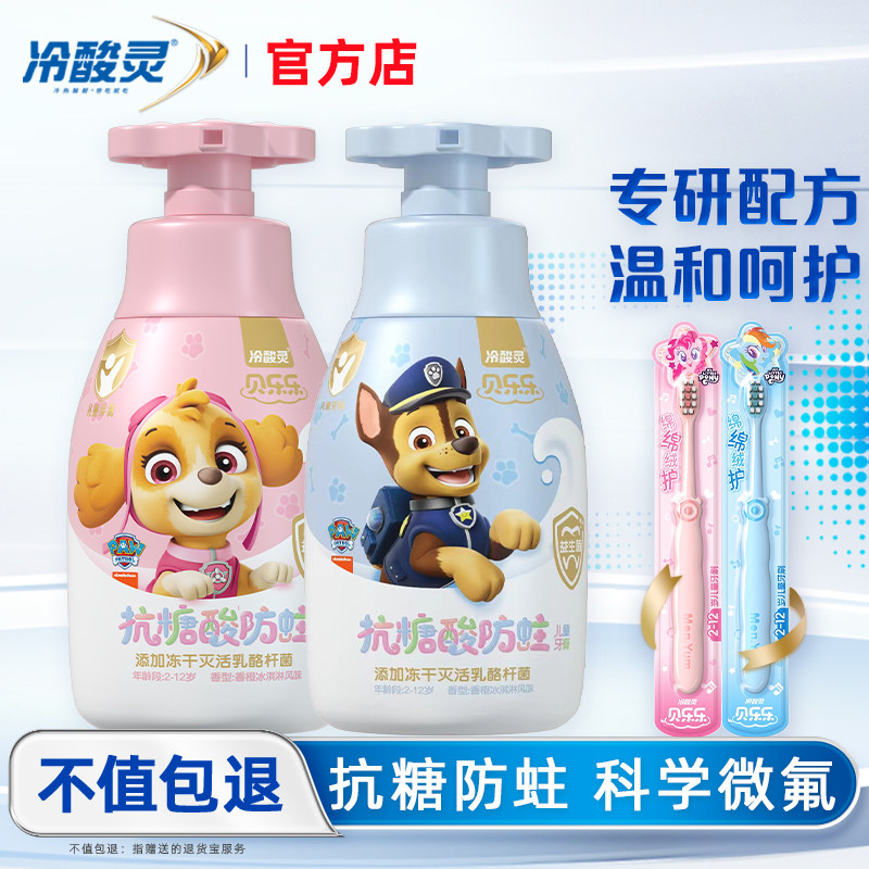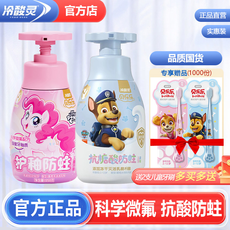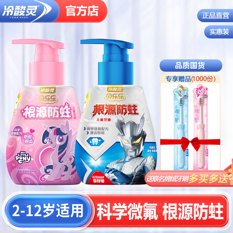 冷酸灵儿童牙膏牙刷抗糖防蛀按压式2-3-6-12岁含氟换牙期宝宝小孩