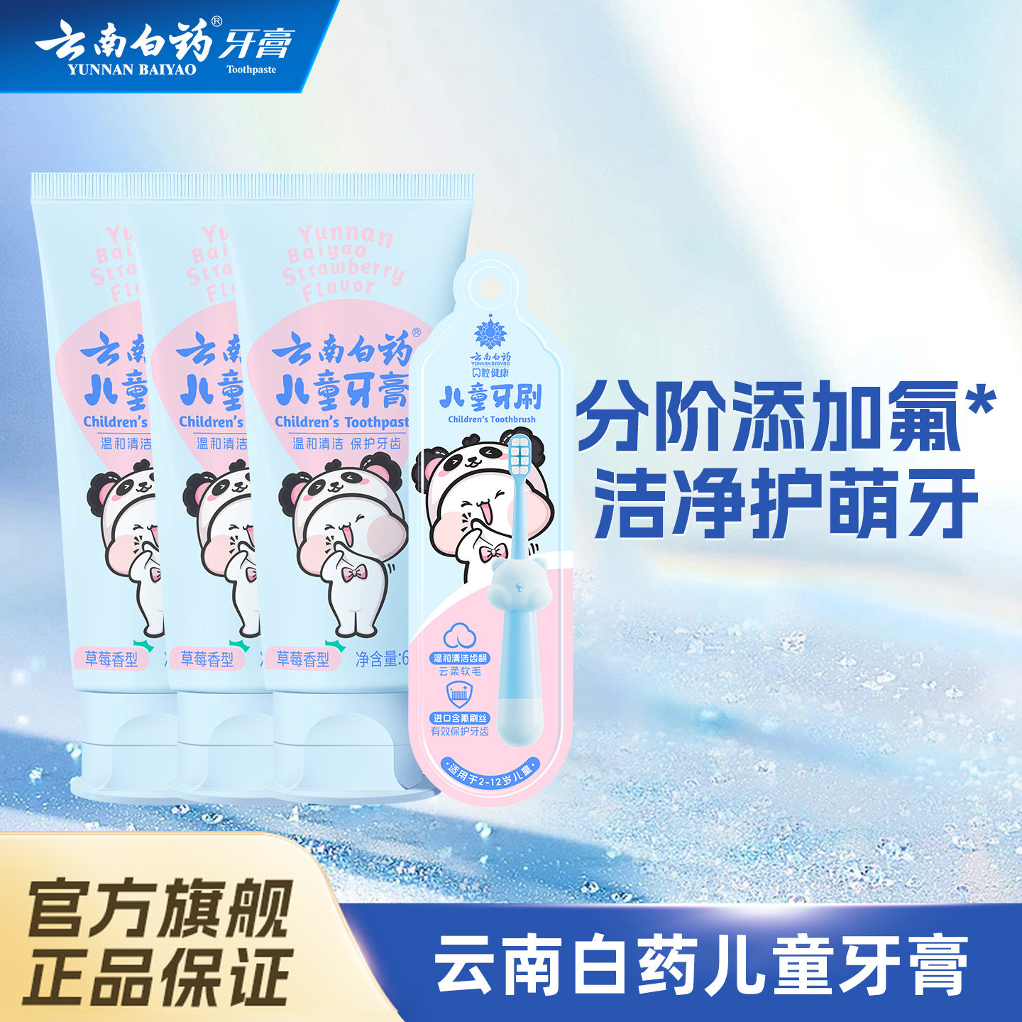 云南白药儿童牙膏牙刷组合套装益菌护口含氟防蛀分阶护口官方正品