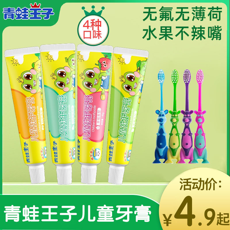 青蛙王子儿童牙膏牙刷水果味3-6-12岁防蛀护龈宝宝无氟牙膏