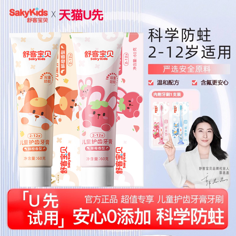 【U先专享】舒客护齿低氟儿童牙膏牙刷组合装2-12岁宝宝适用正品