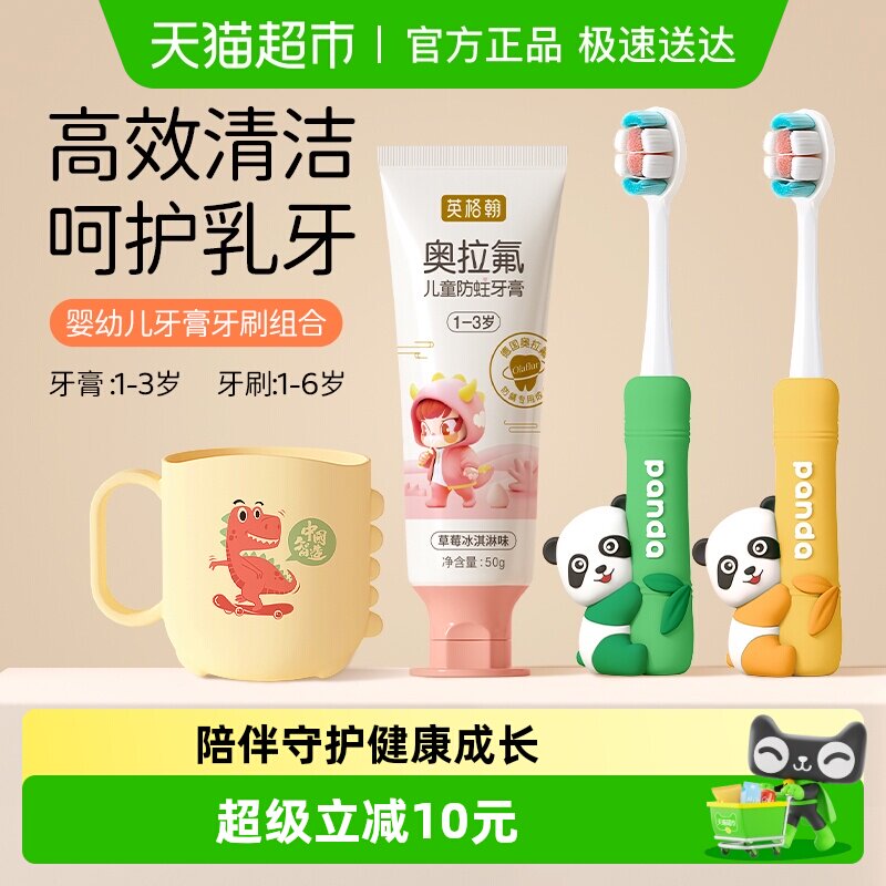 小浣熊婴儿童牙膏牙刷乳牙换牙期3-6-12岁宝宝婴幼儿无氟水果味