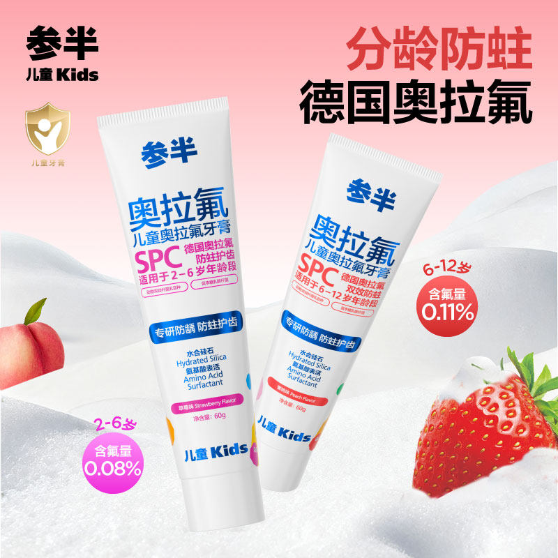 参半奥拉氟儿童牙膏牙刷2-6-12岁宝宝含氟防蛀固齿换牙期专用牙膏