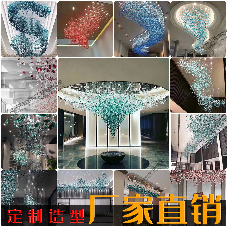 定制创意吊饰天花板酒店会所商场店铺装修设计创意空中琉璃小石头
