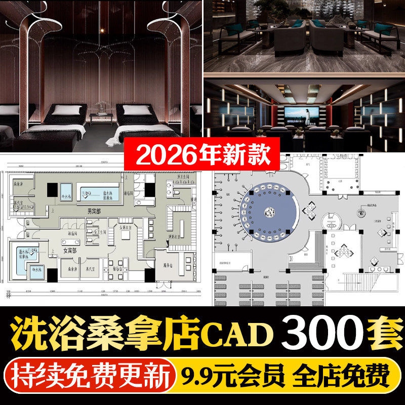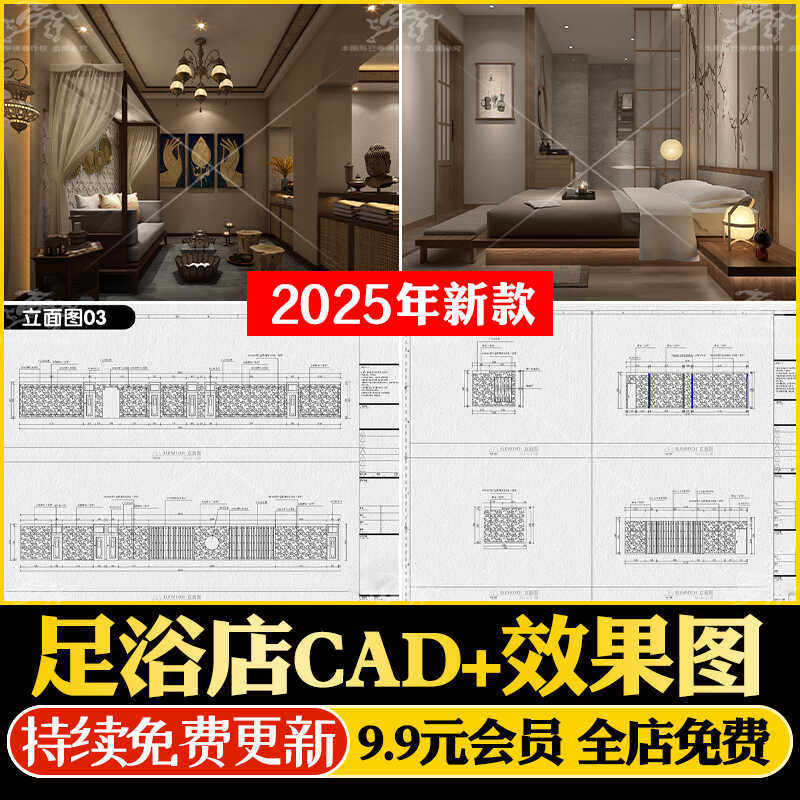 洗浴中心足浴店铺装修设计CAD施工图纸按摩休闲会所效果图设计图