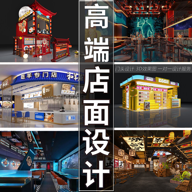 店面店铺装修设计效果图制作3d建模门头门面商铺餐厅工装室内会所