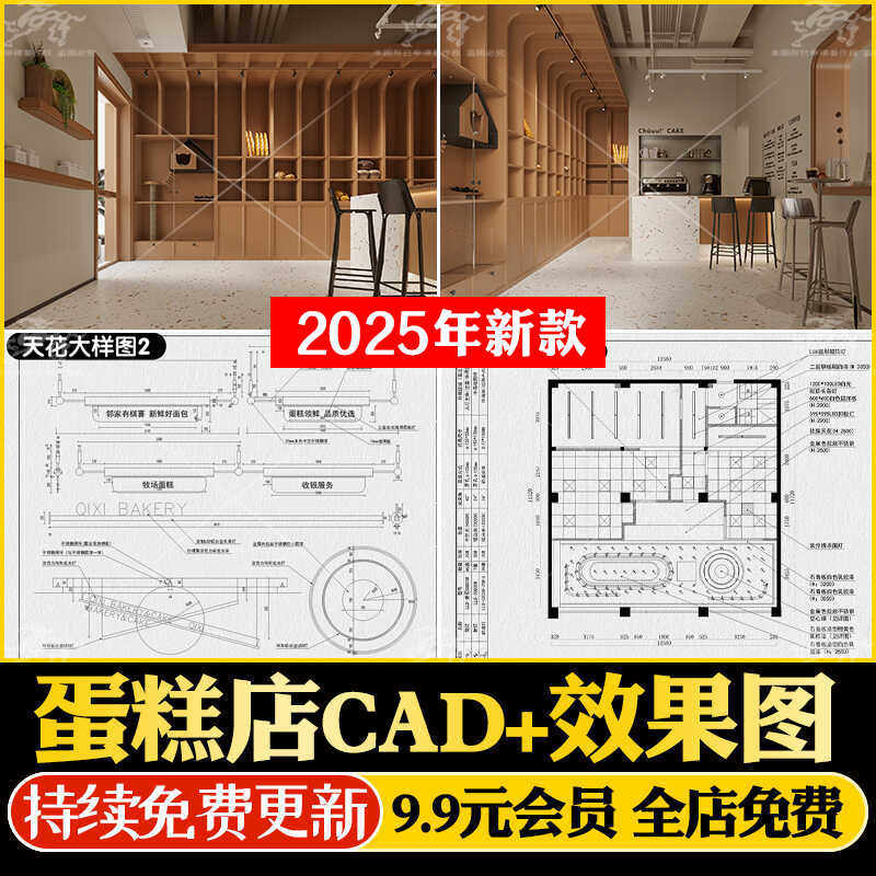 面包烘焙蛋糕店铺装修设计cad施工图平面布局方案商铺设计效果图