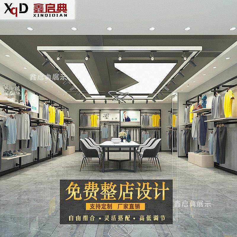 服装店展示架男装货架简约上墙落地式双层挂衣架高档店铺装修设计