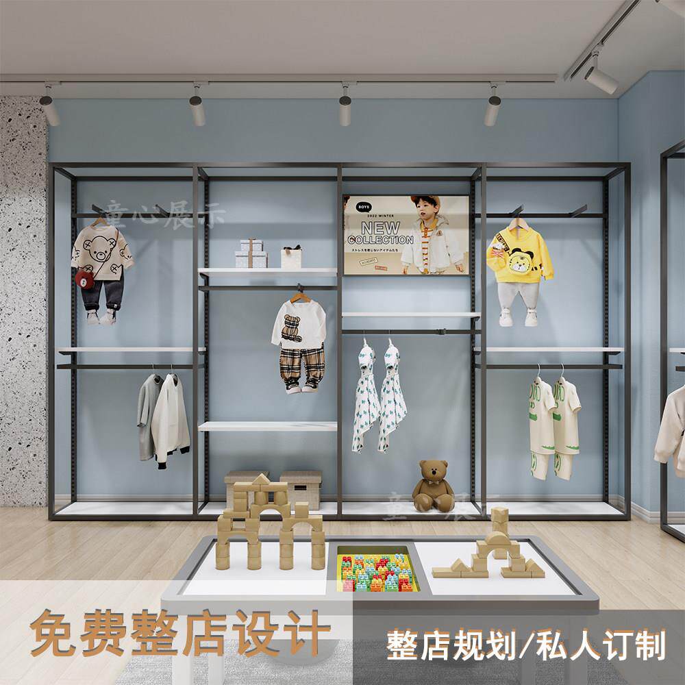 童装店展示架上墙铁艺展示柜童装店铺装修设计效果图服装店挂衣架