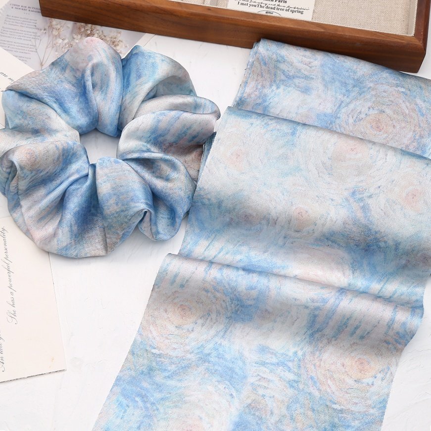 复古油画晕染星空蓝大肠发圈diy布料缎面布手工头绳发饰制作材料