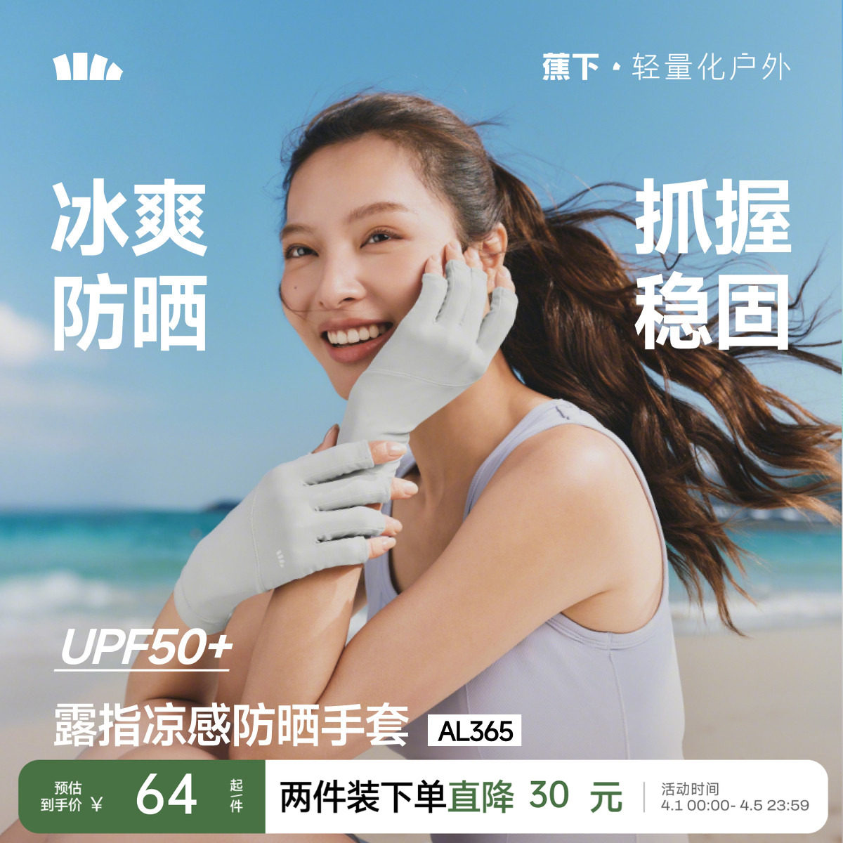 蕉下凉感防晒手套女短款轻薄户外防滑透气防紫外线开车骑行手袖套