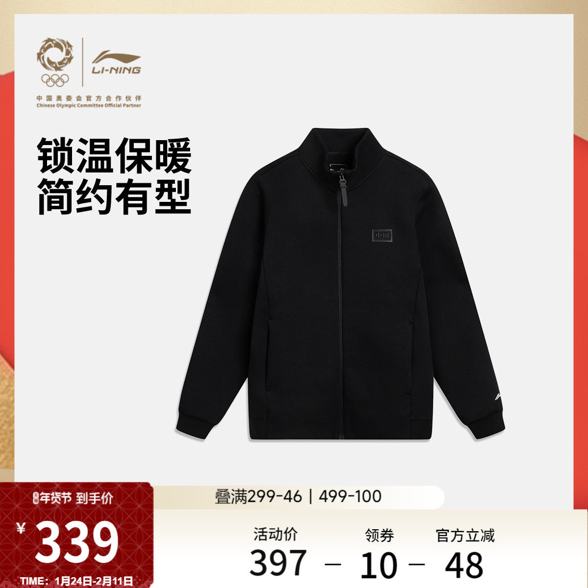李宁外套男士冬季款拉链开衫春新款本命年红色加绒卫衣男马年男装