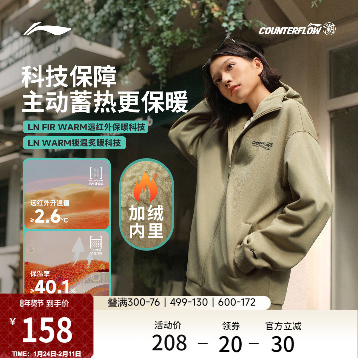李宁户外CF溯丨卫衣男女新款宽松长袖上衣加绒加厚保暖开衫运动服