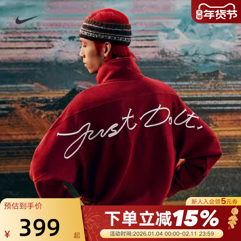 NIKE耐克男加绒外套马年限定新年款红色半拉链立领卫衣IQ3708-613