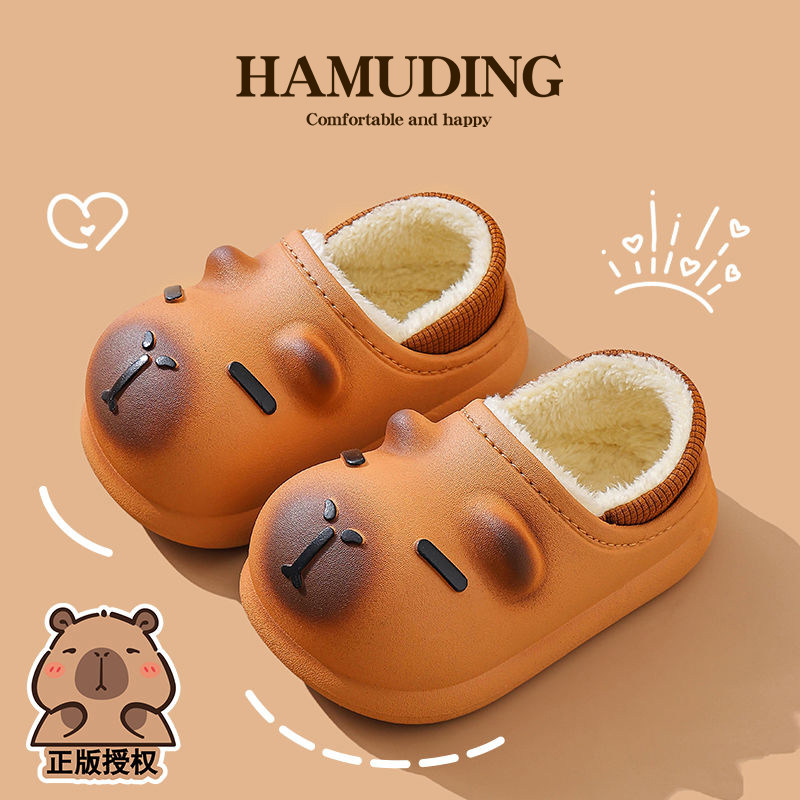 2025新款卡皮巴拉棉拖鞋男女毛绒亲子可爱秋冬季小童中童大童棉鞋