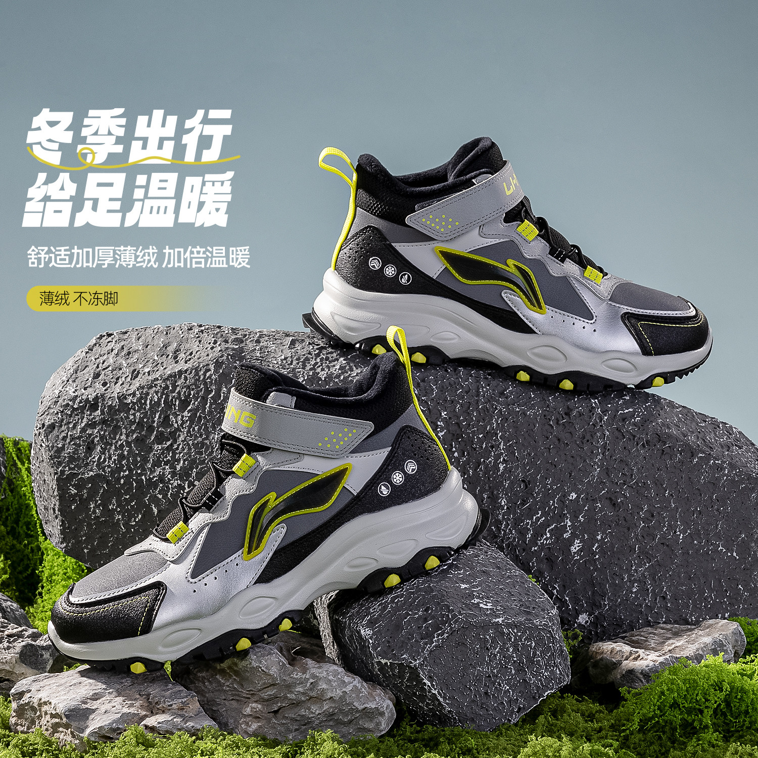 李宁儿童休闲鞋25秋冬季男女中童防泼水加绒保暖舒适百搭厚底棉鞋