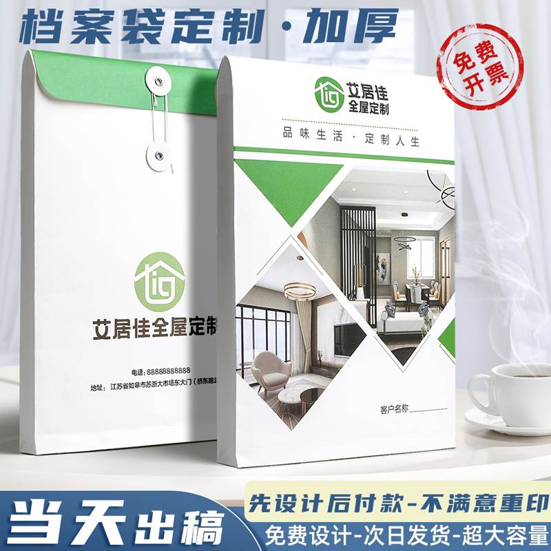 档案袋定制牛皮纸大号加厚文档袋设计制作可印logo文件袋定做装修装饰中介房产加大容量资料袋纸质合同袋印刷