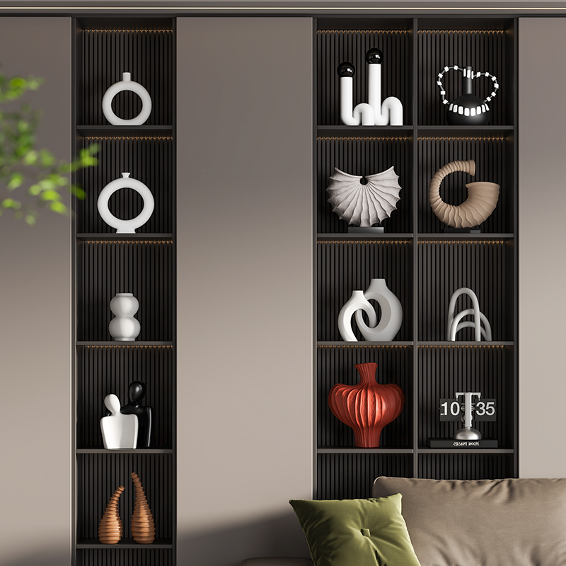 现代简约酒柜装饰品客厅样板间高级感壁龛开放格陶瓷小众艺术摆件