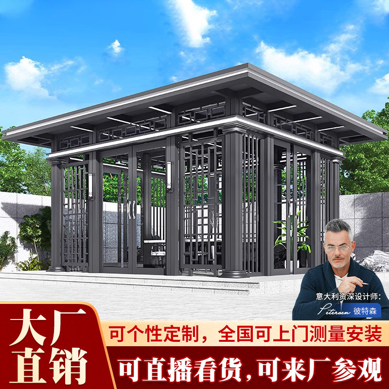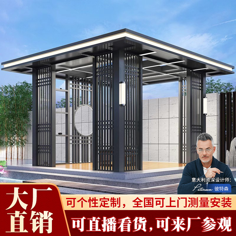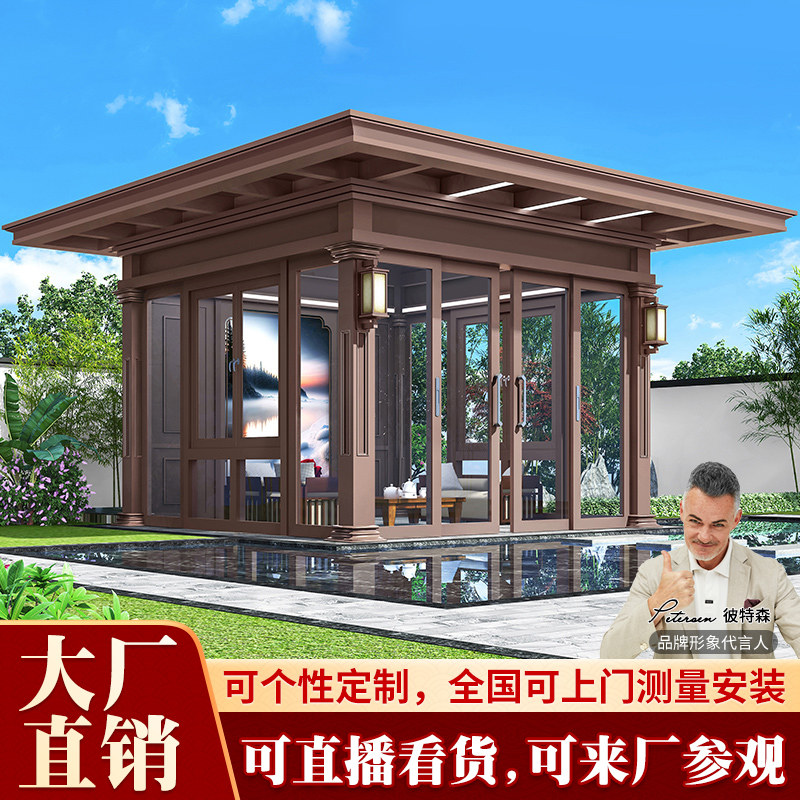 日式铝合金阳光房凉亭亭子庭院新中式户外别墅推拉门茶室铝艺定制