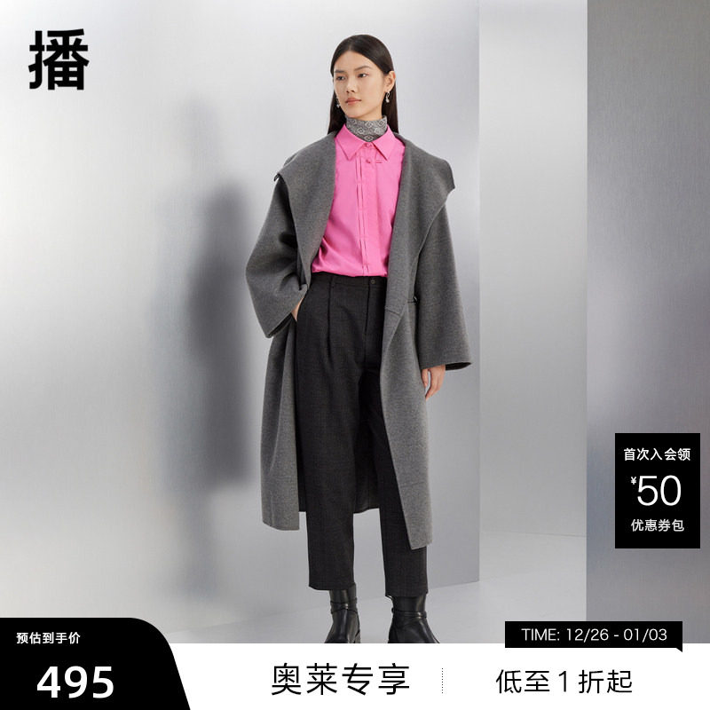 【播奥莱】播羊毛呢大衣女商场同款冬收腰中长款外套BDQ4AD1300